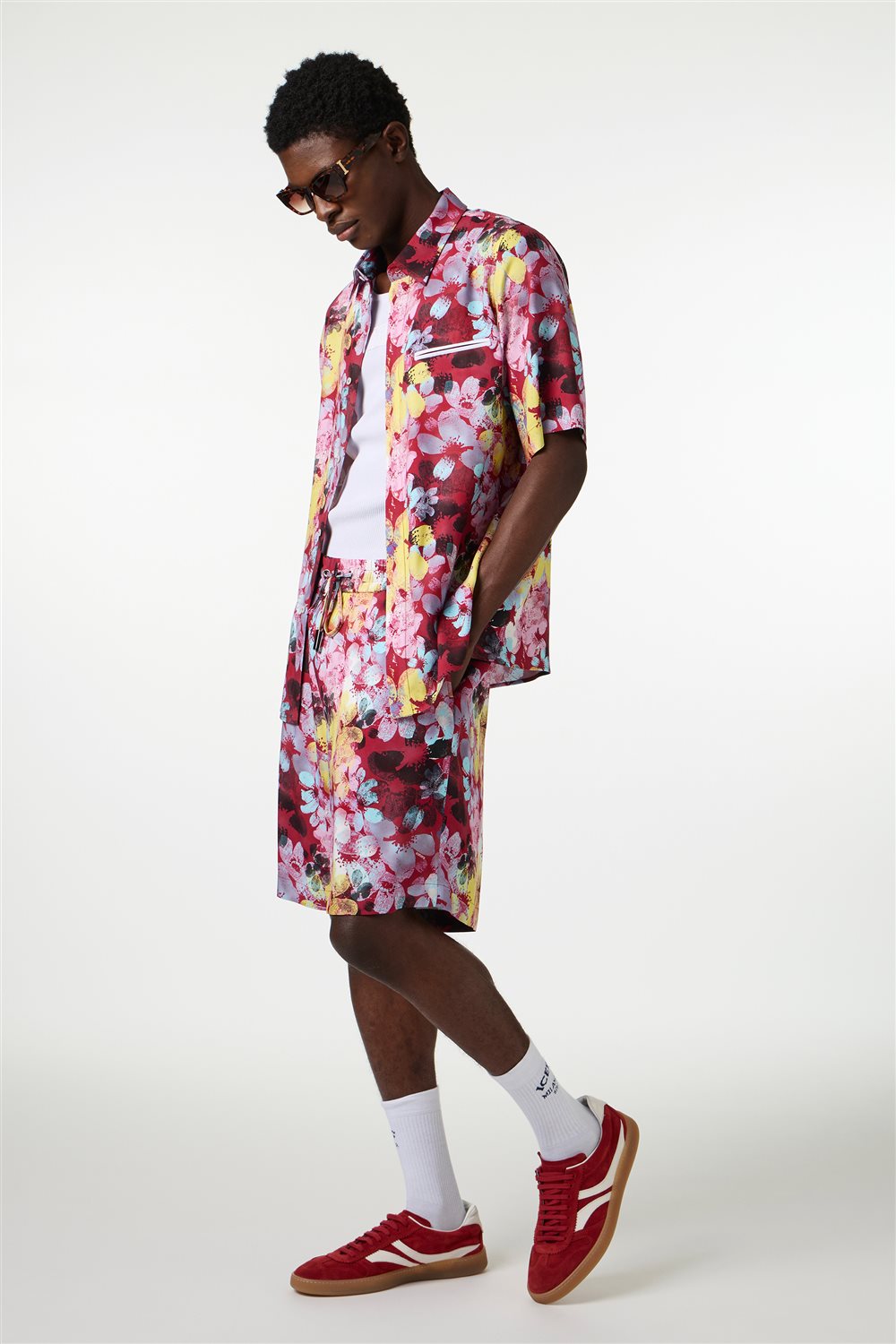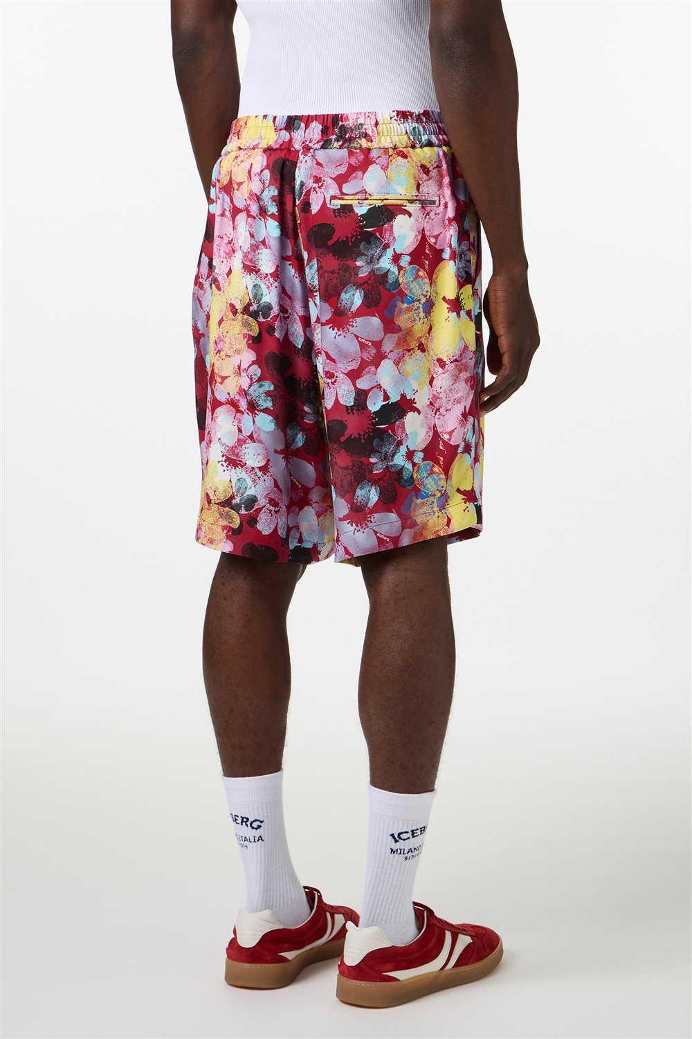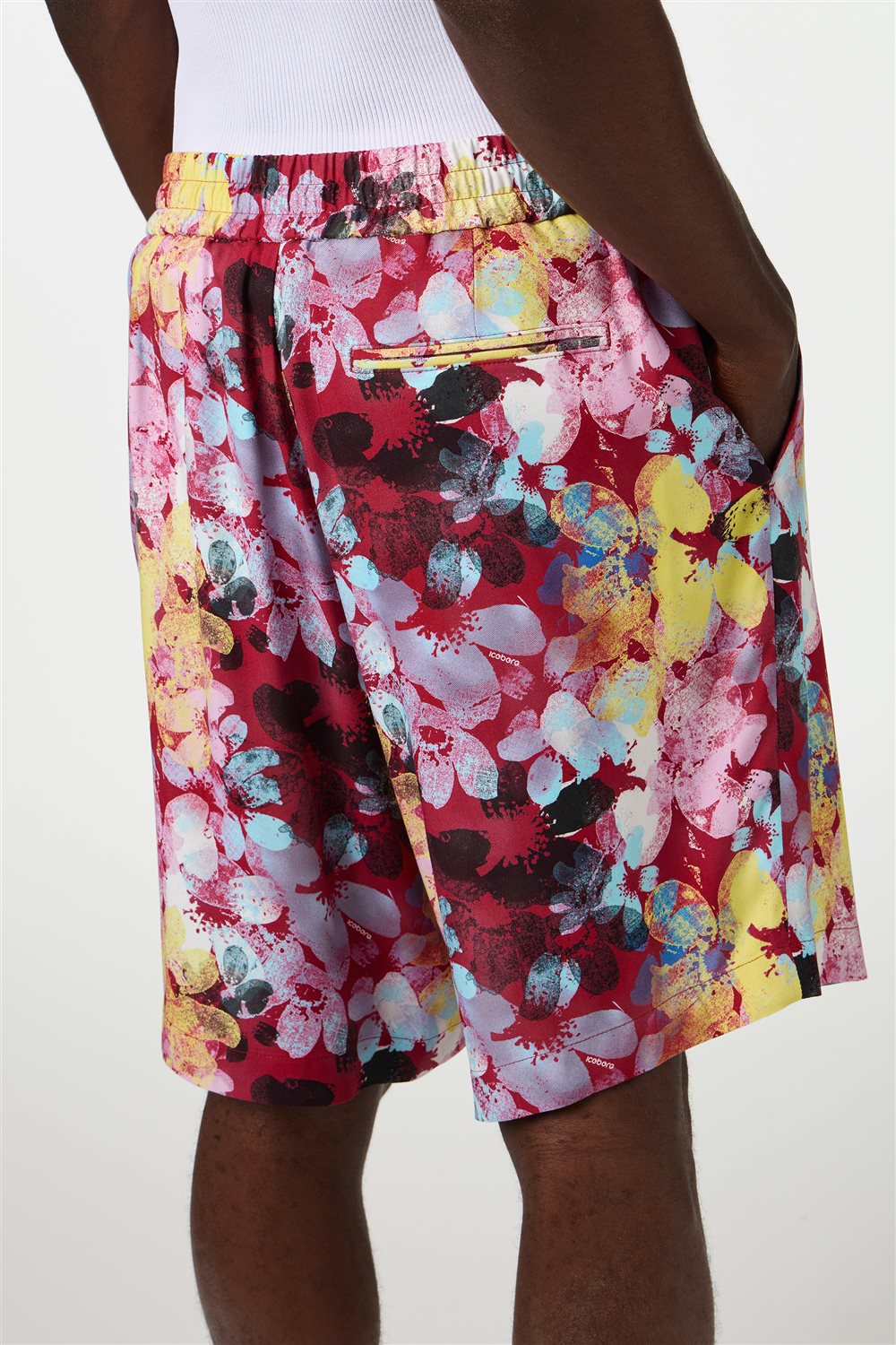 ビスコース製のレギュラーフィットバミューダショーツです。ドローストリング入りのゴムウエストで、両端にはガンメタル仕上げのアイスバーグロゴ入り。